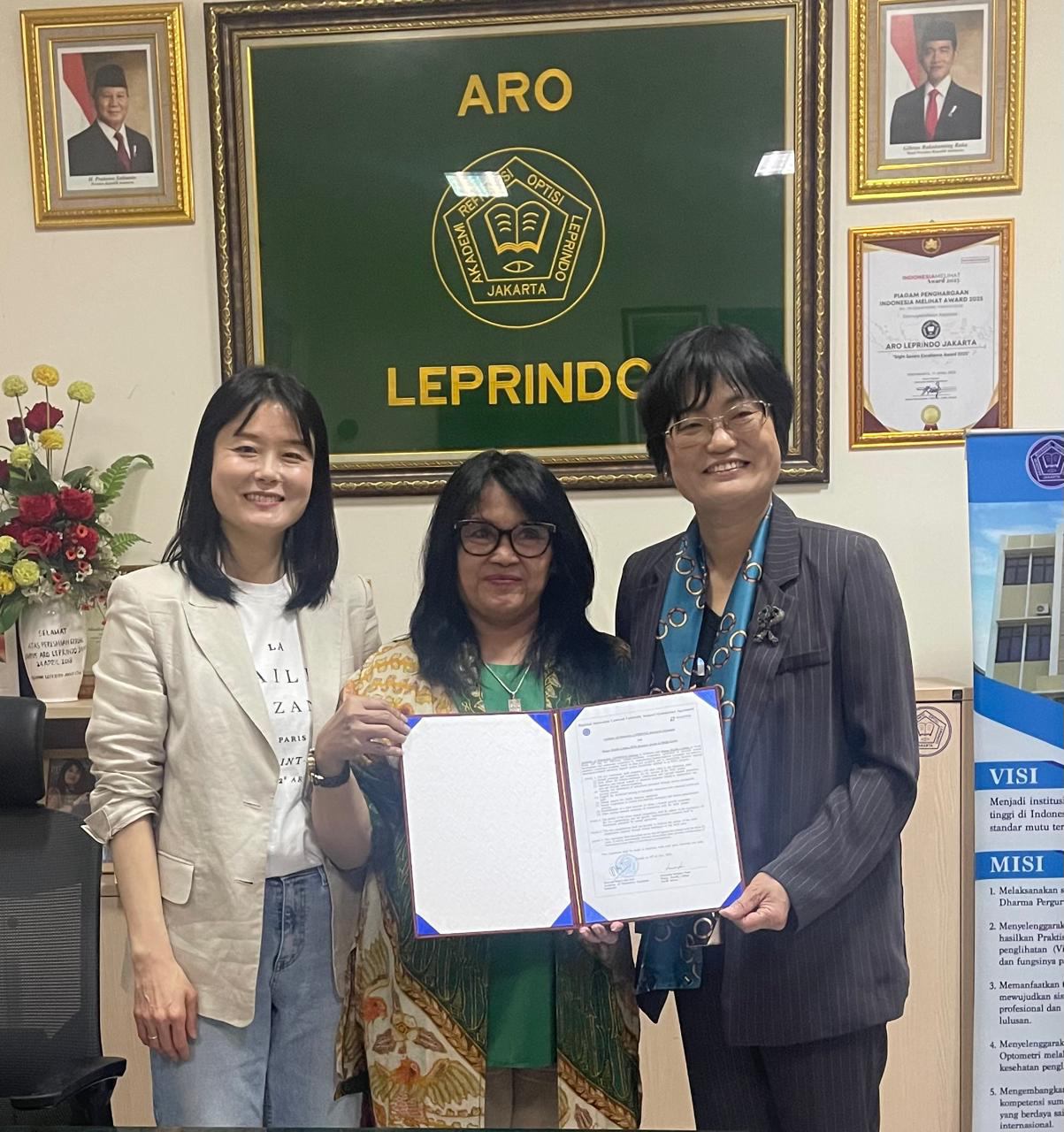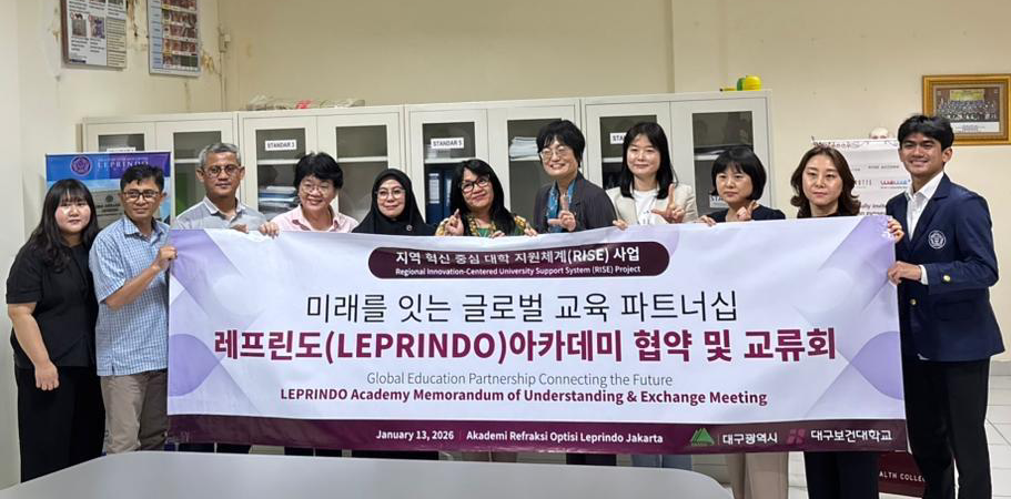 Pada tanggal 13 Januari 2026 bertempat di kampus ARO Leprindo Jakarta telah dilaksanakan pertemuan dalam pembahasan dan penandatanganan kerja sama internasional antara Akademi Refraksi Optisi Leprindo Jakarta dan Daegu Health College, Korea Selatan. Melalui program “Regional Innovation Centered University Support System (RISE) Agreement” mencakup program magang mahasiswa (student internship) untuk meningkatkan keterampilan praktis dan pengalaman kerja, serta bertujuan memperkuat kolaborasi akademik dan industri, pengembangan pendidikan berbasis dunia kerja, dan penciptaan ekosistem inovasi yang mendorong pertumbuhan dan daya saing regional secara berkelanjutan. Melalui pembentukan jejaring kolaboratif, kedua institusi berupaya menciptakan ekosistem pertumbuhan bersama yang berdampak bagi pengembangan regional.